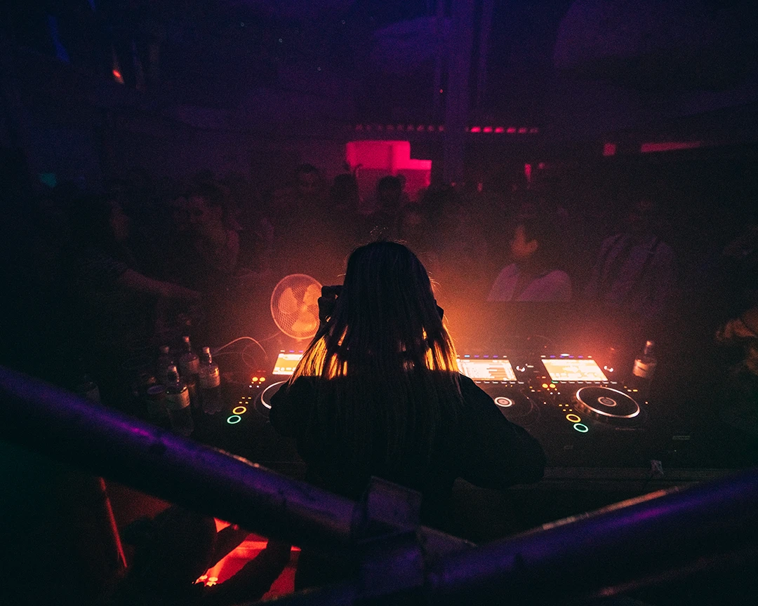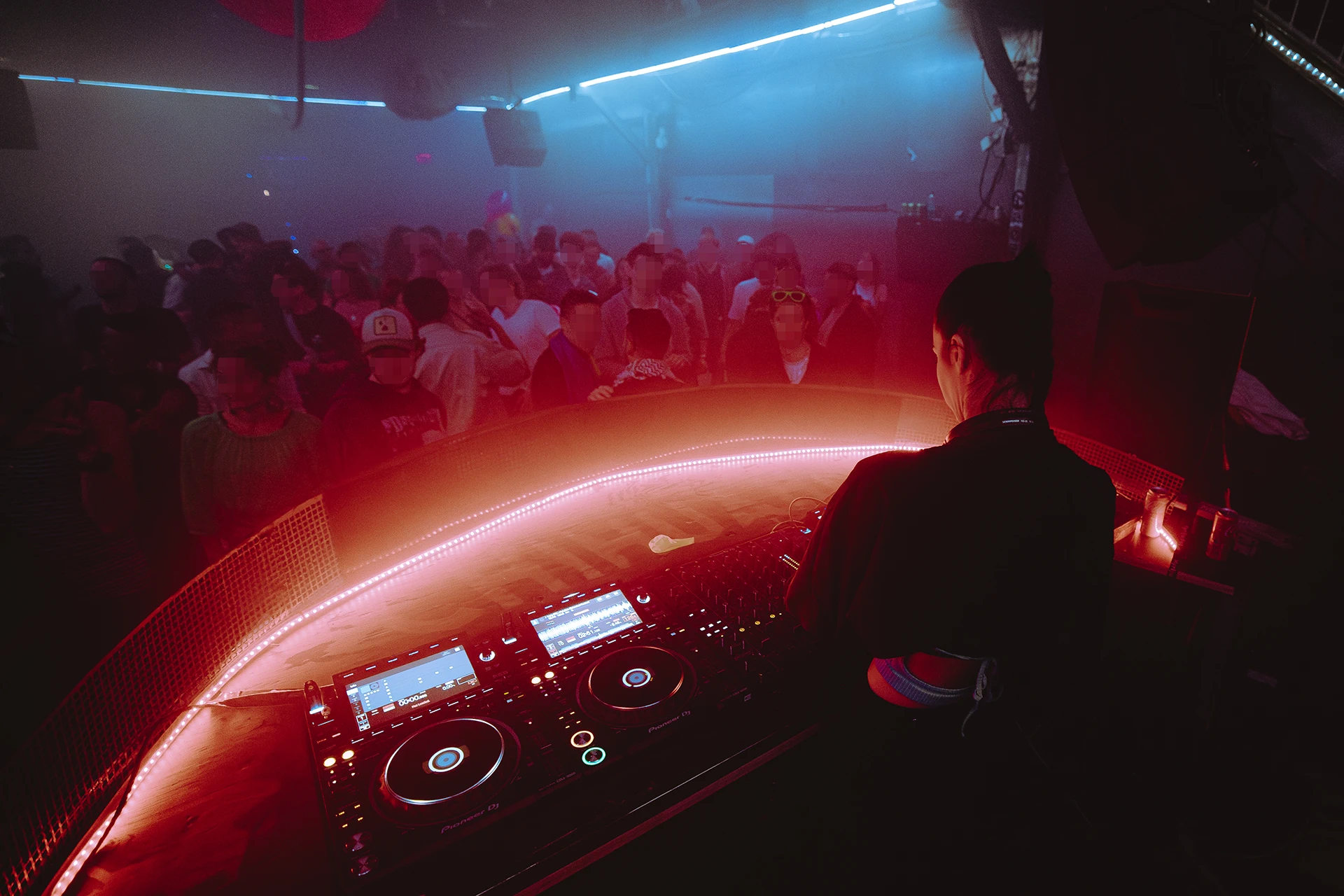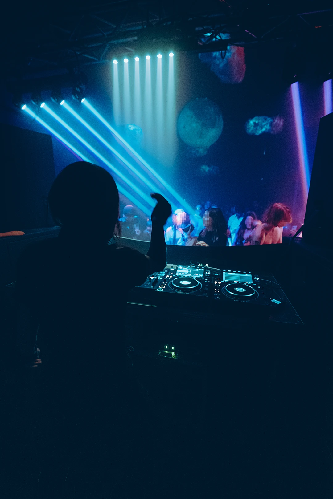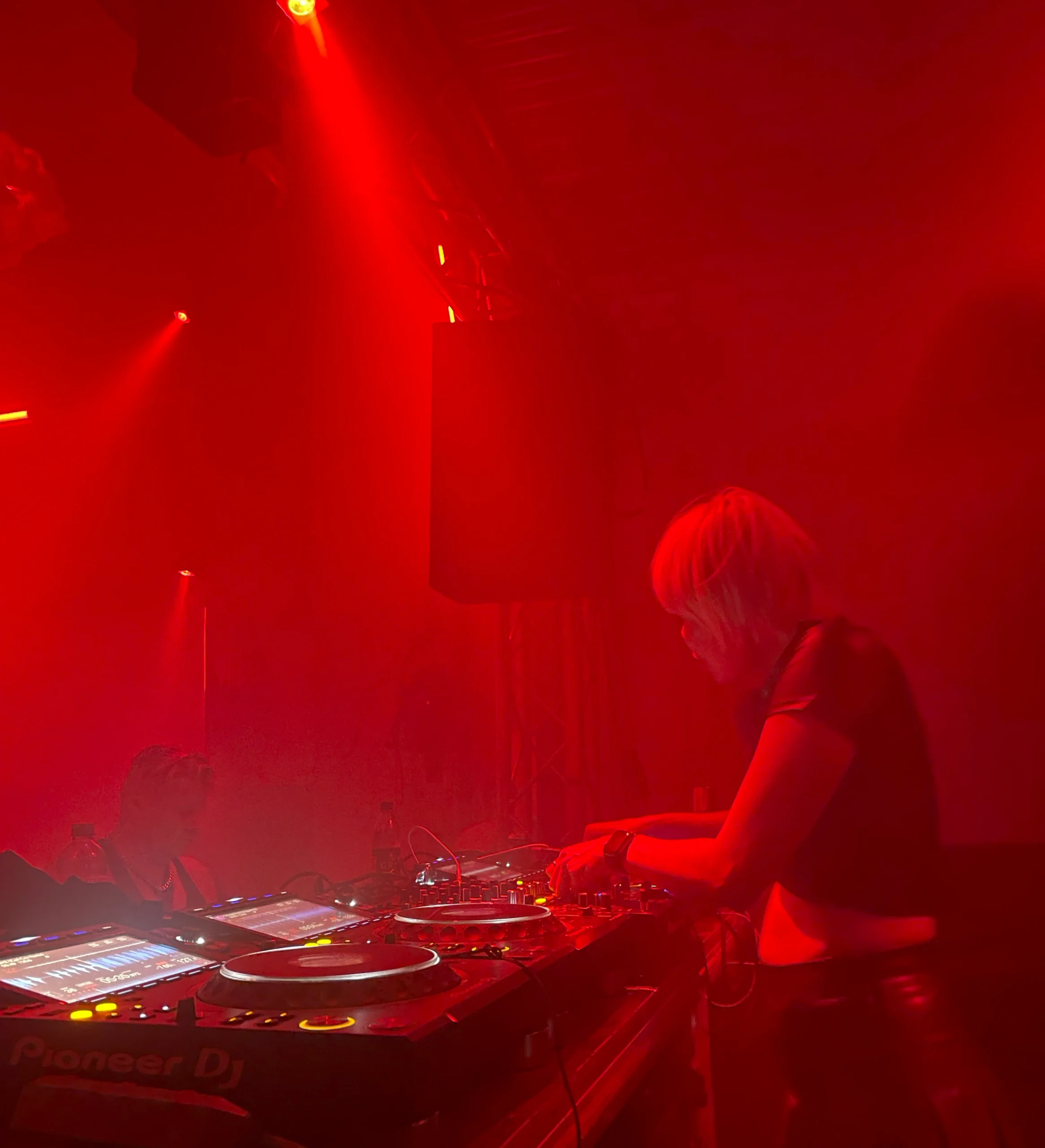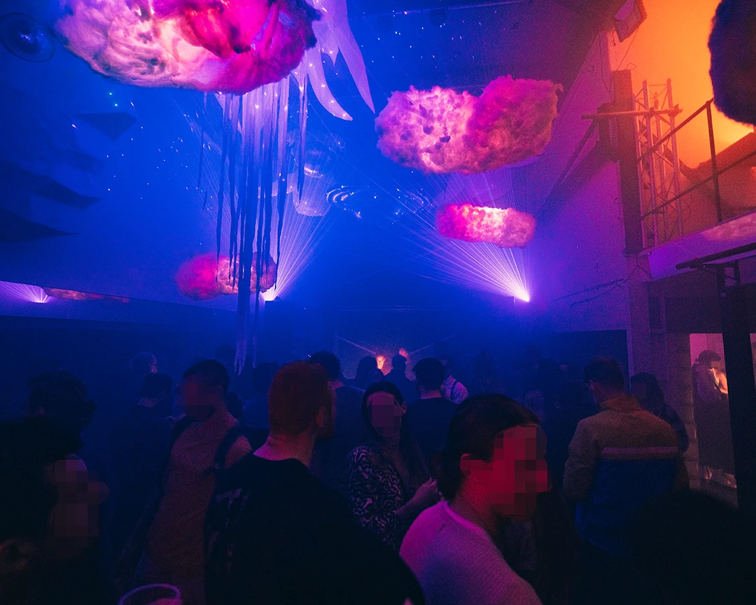 That exact vibe shaped what we value for our parties: a softer and warmer energy on the dancefloor. “Feminine energy” here is not tied to gender or quotas; it is a quality we nurture through the music, how we host the nights and how we build the space. We amplify this energy with multisensory design: scents, textiles, warm light and décor combine to create a safe and welcoming space. The goal is connection, ease and smiles.
